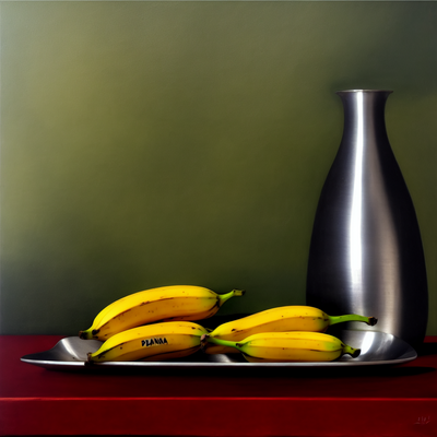 DescriptionGoing bananas the stylish way. A still life.FeaturesReviews0 Close Going bananas the stylish way. A still life. Art media AI generated File type .png File size 1,08 MB Pixels 1024 x 1024 Write a review There are no reviews yet Product tags Download 201 AI Art 192