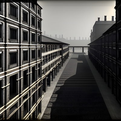 Stationary Architecture 006. Surrealistic industrial street view. Full of emptiness.