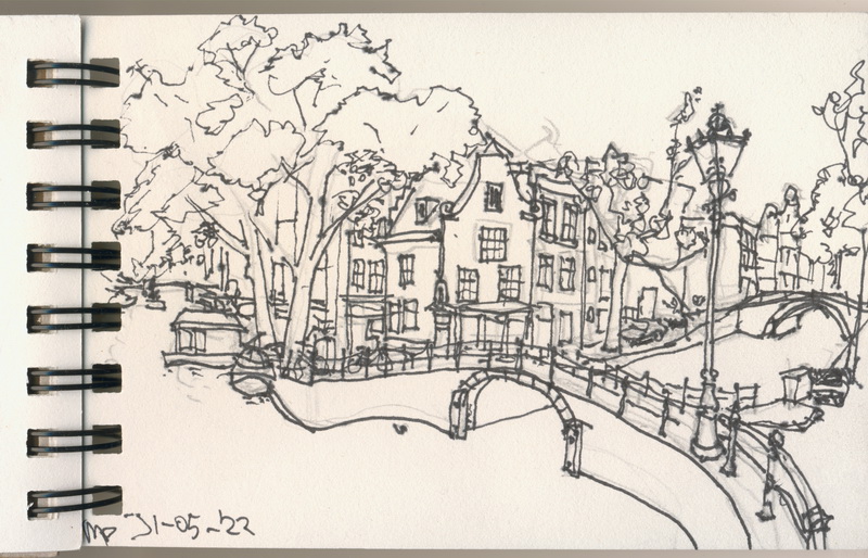 ink sketch of "Amsterdam canal corner Pinsengracht Reguliersgracht" 4206x2701