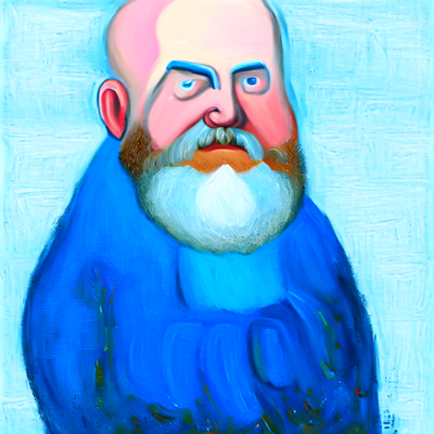 Balding Smurf with beard, concerned about how things are getting on in the world.